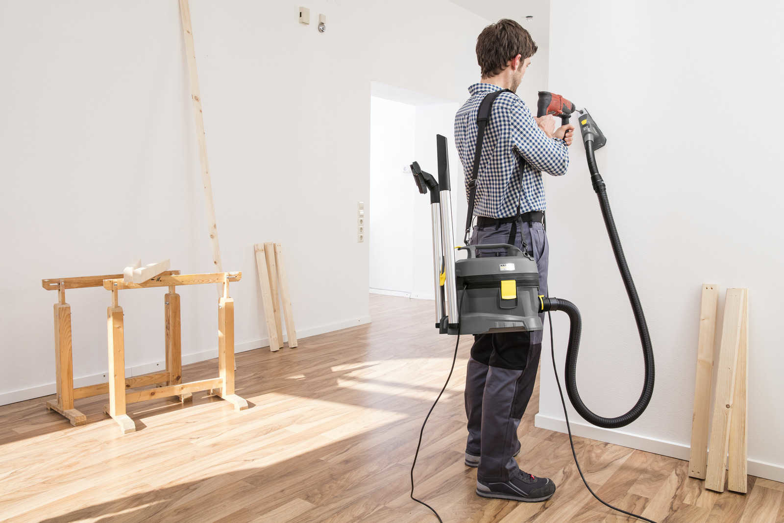 L’aspirateur poussières T 8/1 L a été spécialement conçu pour les artisans en prenant en compte leurs besoins. Robuste, résistant à l’usure, puissant et équipé d’une sangle de transport ergonomique, il excelle sur tous les chantiers de construction. Equipé avec une classe de filtration L, il peut être utilisé dans des environnements très poussiéreux. Son poids extrêmement léger facilite son transport et son utilisation dans des lieux inaccessibles pour les plus grosses machines, par exemple sur des échelles ou des escaliers. Des rangements intégrés pour accessoires permettent leur stockage simple et sécurisé directement sur l’appareil.