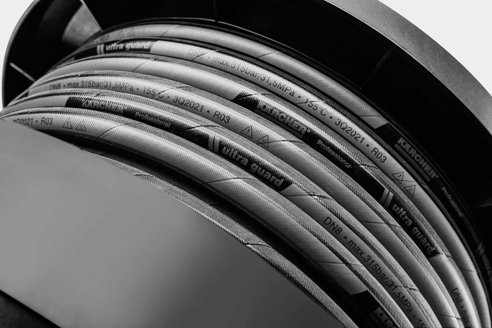 Nettoyeur haute pression à eau chaude le plusouissant de la gamme Medium de Kärcher, le HDS 10/21-4 MXA eB avec enrouleur de flexible automatique et flexible haute pression Ultra Guard intégré séduit à tous les égards. L’enrouleur de flexible permet d’enrouler et de dérouler le flexible à revêtement en téflon de 20 mètres même jusqu’à un angle de 45°, pour des temps de préparation réduits de moitié. En outre, la pompe axiale robuste à 3 pistons avec revêtement en céramique, le moteur électrique à faible vitesse de rotation 4 pôles refroidi par eau, la technologie de brûleur optimisée et le modeeco!efficiencyassurent des performances maximales et un fonctionnement économique. Les utilisateurs bénéficient également de la poignée pistoletEASY!ForceAdvanced sans effort de maintien avec lance haute pression de 1050 millimètres et Servo Control ainsi que de la commande simple avec le bouton unique Easy Operation et de nombreuses possibilités de rangement ergonomiques pour les différents accessoires. Inclus : l’eco!Booster
